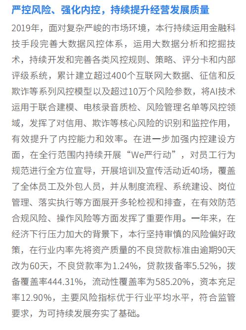 图:江苏苏宁银行风控解读,截自该行2019年报