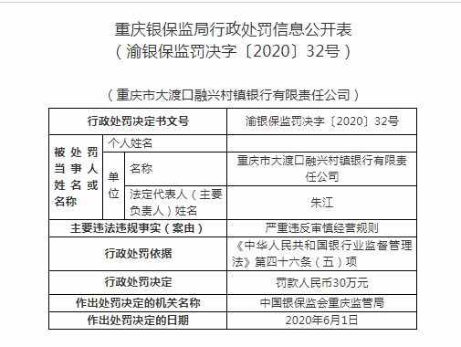 重庆沙坪坝融兴村镇银行被罚46.5万