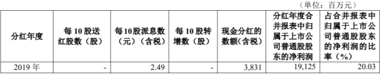 华夏银行2019年度利润分配预案为:按审计后的本公司2019年度归属于母公司股东的净利润209.42亿元的10%提取法定盈余公积金20.94亿元。根据财政部《金融企业预备金计提管理办法》(财金〔2012〕20号)的规定,普通预备余额不低于承担风险和损失资产期末余额的1.5%。2019年拟提取普通预备36.71亿元。以2019年末普通股总股本153.87亿股为基数,每10股现金分红2.49元(含税),拟分配现金股利38.31亿元。