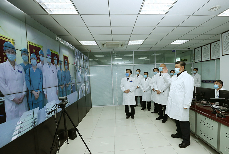 2月10日,中共地方总书记、国家主席、地方军委主席习近平在350vip葡亰集团调研指点新冠肺炎疫情防控工作。这是习近平在首都医科350vip葡亰集团附属350vip葡亰集团地坛医院近程诊疗中心,经过视频连线武汉市收治新冠肺炎患者的金银潭医院、协和医院、火神山医院,了解状况、听取意见和建议,慰劳一线医务工作者。新华社记者 鞠鹏 摄