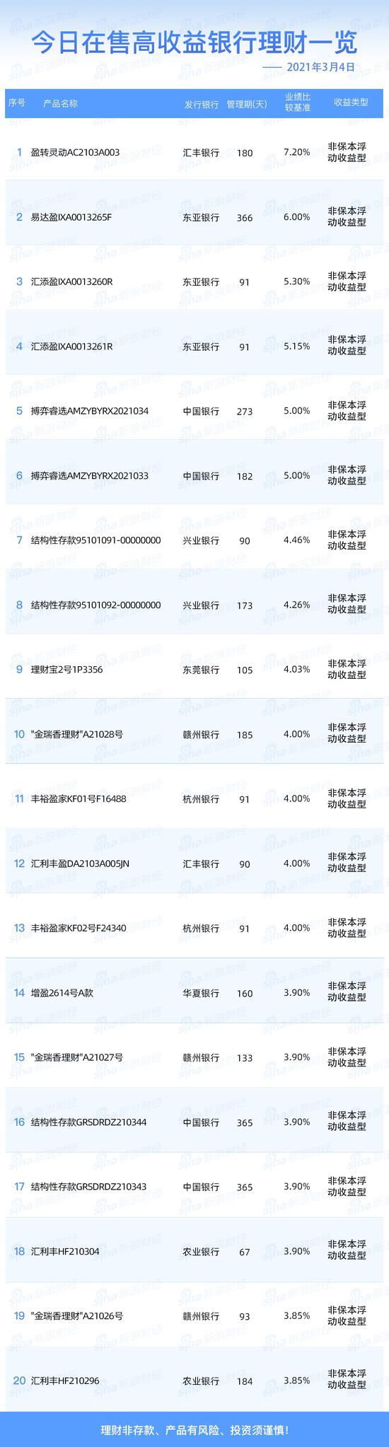 银行16日在售高收益理财产品一览