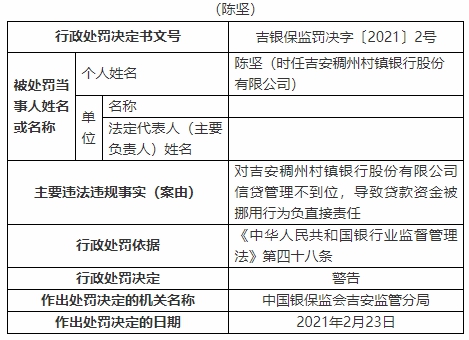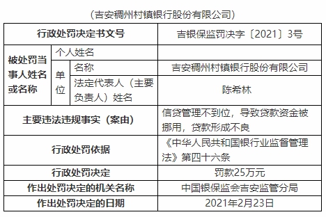 稠州村镇银行授信管理违法遭罚