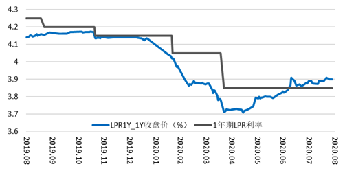 同时,随着LPR运用占比明显提升,贷款利率隐性下限被完全打破。2020年7月,新发放贷款中利率低于原贷款基准利率0.9倍的贷款占比为40.2%,是改革前2019年7月的4.4倍。LPR的下行带动贷款利率明显下降,降幅超过LPR本身的降幅。2020年8月,普通贷款加权均匀利率为5.43%,较改革前的2019年7月下降0.67个百分点。而同期1年期LPR由4.25%下降至3.85%,降幅为0.4个百分点。这反映了LPR改革加强金融机构自主定价才能、进步贷款市场竞争性、促进贷款利率下行的重要作用,经过LPR改革打破利率传导机制妨碍、促进降低贷款利率的成效明显。