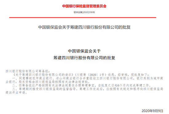 银保监会:赞同在辽宁省沈阳市筹建辽沈银行