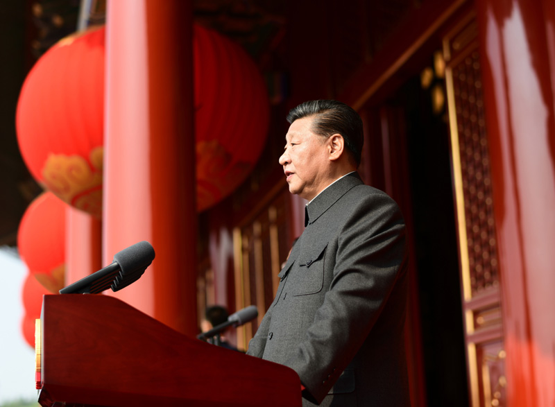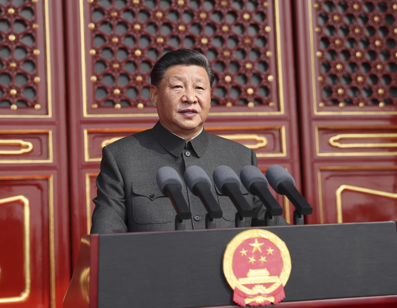 习近平在讲话中指出,70年前的今天,毛泽东同志在这里向世界庄严宣告了中华人民共和国的成立,中国人民从此站起来了。这一伟大事情,彻底改变了近代当前100多年中国积贫积弱、受人欺凌的凄惨命运,中华民族走上了完成伟大复兴的壮阔道路。70年来,全国各族人民同心同德、艰苦奋斗,获得了令世界刮目相看的伟大成就。今天,社会主义中国巍然屹立在世界东方,没有任何力量可以撼动我们伟大祖国的地位,没有任何力量可以阻挠中国人民和中华民族的行进步伐。