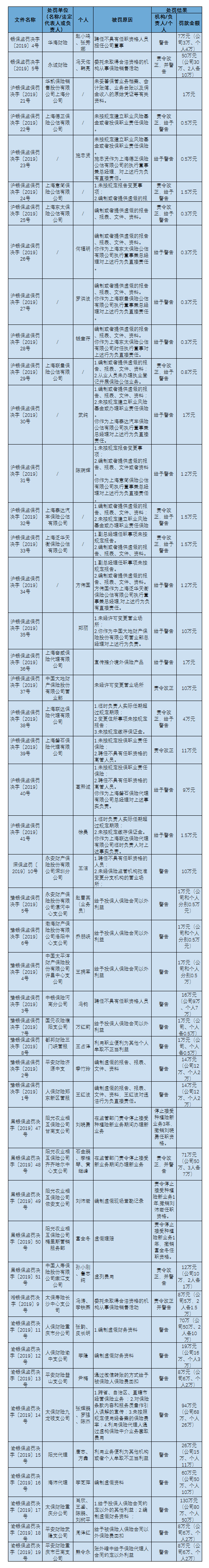 上海磐石保险代理有限公司因未按规定投保职业责任保险,以及聘任不具有任职资历的高管人员,被罚11万元,总经理葛熙诚被罚9万元。中国大地财产保险股份有限公司营业部因未经答应变更营业场所,被罚10万元,总经理郑丽异样被罚10万元。其他罚单罚金均在0.3万元至1.5万元不等。