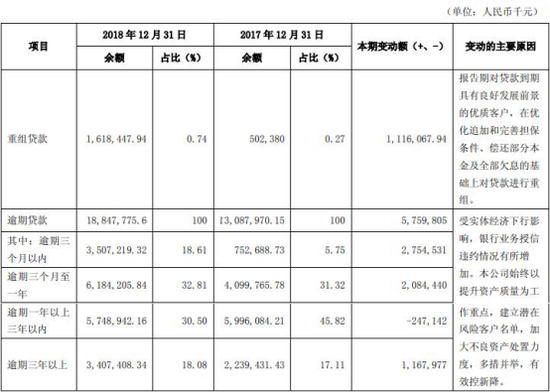 2018年末,吉林银行逾期贷款余额为188.48亿元,较上年同期的130.88亿元增长44.01%。其中,逾期三个月及以上贷款余额为153.41亿元,上年同期为123.35亿元。对此,吉林银行表示,受实体经济下行影响,银行业务授信违约状况有所添加。