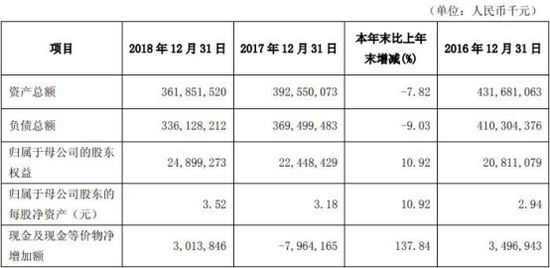 截至2018年末,吉林银行的资产总额为3618.51亿元,比上年末减少7.82%;负债总额为3361.28亿元,比上年末减少9.03%。