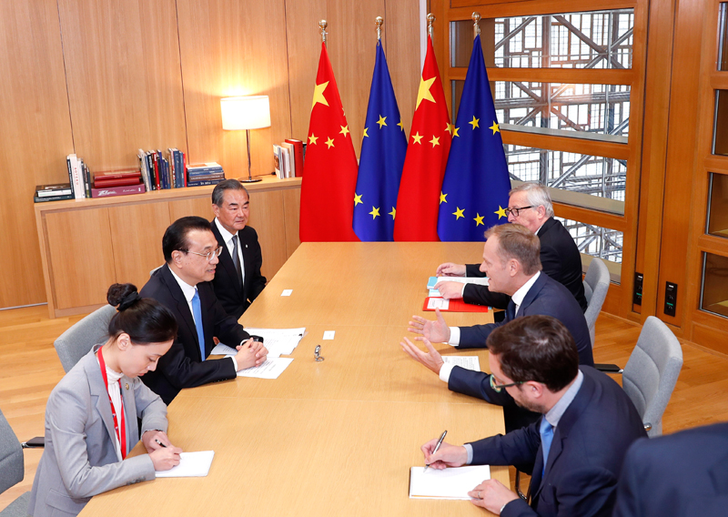 当天下午,李克强总理与欧盟领导人密集进行了小范围会谈、工作午宴、正式会晤、签字仪式和共见记者。