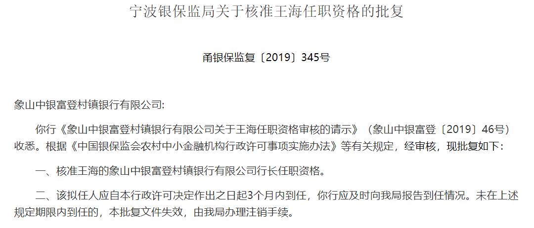 中银富登村镇银行股份有限公司成立