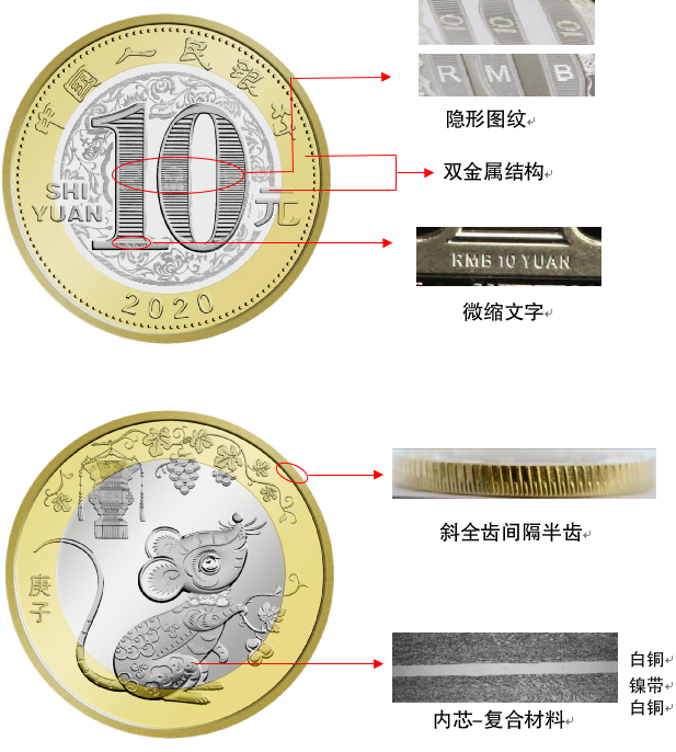 2020年贺岁双色铜合金留念币公众防伪特征