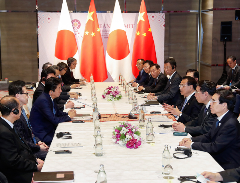 李克强会见出席中日韩外长会的韩国外长和日本外相