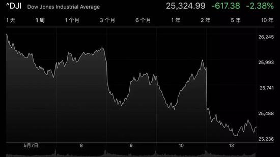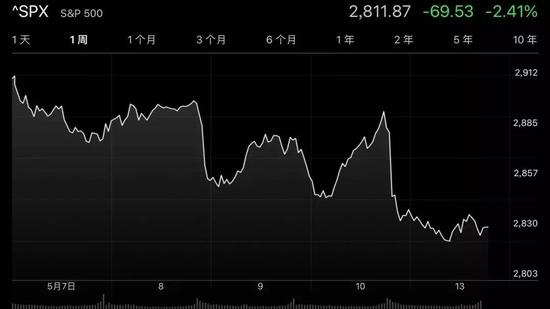 此前5月6日至5月10日的一周内,开年以来85个买卖日中有54天都在下跌的标普500指数连续四个买卖日下滑,周内累跌2.17%,创下2019年迄今最大单周跌幅;道指累跌2.12%,纳指累跌3.03%,美股市值过去一周工夫蒸发约9600亿美元。美国股票基金流出140亿美元,为2019年1月以来最大。