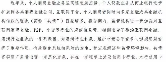 对于坏账堆积,中信银行在年报中表示,受宏观经济和监管环境影响,共债客群资产质量出现一定恶化迹象,并在一定程度上波及信誉卡行业。