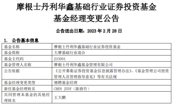 摩根士丹利华鑫基金4只产品增聘基金经理周梦琳