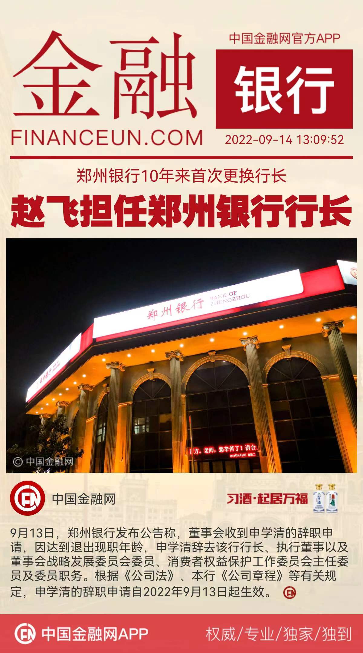 9月13日,郑州银行发布公告称,董事会收到申学清的辞职恳求,因达到加入现职年龄,申学清辞去该行行长、执行董事以及董事会战略350vip葡亰集团委员会委员、消费者权益保护工作委员会主任委员及委员职务。根据《公司法》、本行《公司章程》等有关规定,申学清的辞职恳求自2022年9月13日起失效。