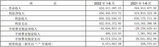 今年上半年,辽宁复兴银行完成利息净支出4.56亿元,上年同期为4.20亿元;完成投资收益967.37万元,上年同期为26.86万元。