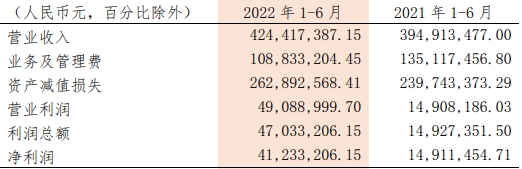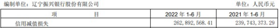 2022年1-6月,辽宁复兴银行信誉减值损失2.63亿元,上年同期为2.40亿元。