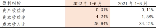2022年1-6月,辽宁复兴银行的资产收益率为0.31%,上年同期为0.11%,增长0.20个百分点。