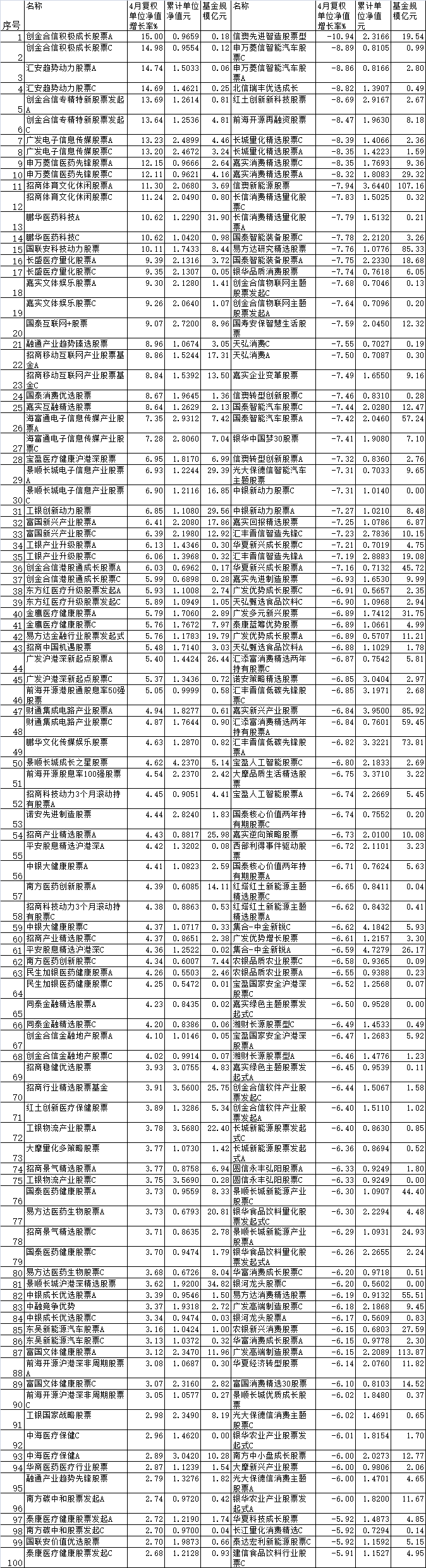 中国经济网350vip葡亰集团5月5日讯 (记者 康博) 在刚过去的4月份里,在878只(各份额分开计算,下同)普通股票型基金中,业绩下跌的数量共有232只,占比26%,除2只基金业绩持平外,下跌基金数量达到了644只,占比73%。