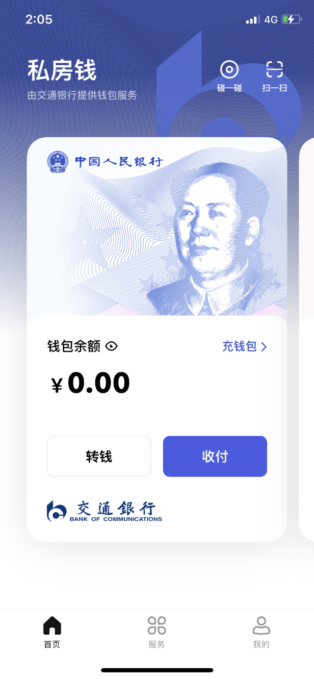 记者体验到,本次上线的数字人民币(试点版)App较前一版本进行了分区与功能上的优化。其中在分区上,将界面优化成“首页、服务、我的”三大板块,“首页”显示一切已开通钱包和相关功能,“服务”包含子钱包、红包、硬件钱包管理等功能,“我的”则管理新开钱包、账号安全、设置相关的功能。