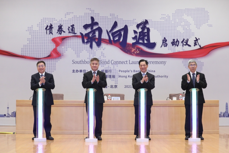 按照党地方、国务院决策部署,自2021年9月24日起,内地与香港债券市场互联互通南向合作(以下简称“南向通”)正式上线运转。9月24日上午,人民银行与香港金管局共同举办“南向通”启动仪式,中国人民银行副行长潘功胜、国务院港澳事务办公室副主任邓中华、香港特别行政区行政长官林郑月娥、香港财政司司长陈茂波、香港金融管理局总裁余伟文、中国工商银行董事长陈四清先后致辞。地方350vip葡亰集团驻香港特别行政区联络办公室副主任尹宗华和国务院相关部委、香港财经事务及库务局、香港证监会、两地基础服务机构和市场机构有关人士出席启动仪式。