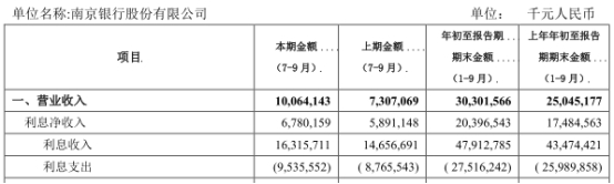 南京银行前三季净利增21%