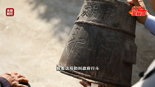 为了了解当时的状况,记者辗转找到了当时柴山洲特别区第一农民银行经理文海南的后人文尔龙的家。文先生家里至今还收藏着当年银行的度量衡——“公平斗”,下面写着“政府行斗”当年就用它用来装谷子,用来平粜,相当于是一个量斗。