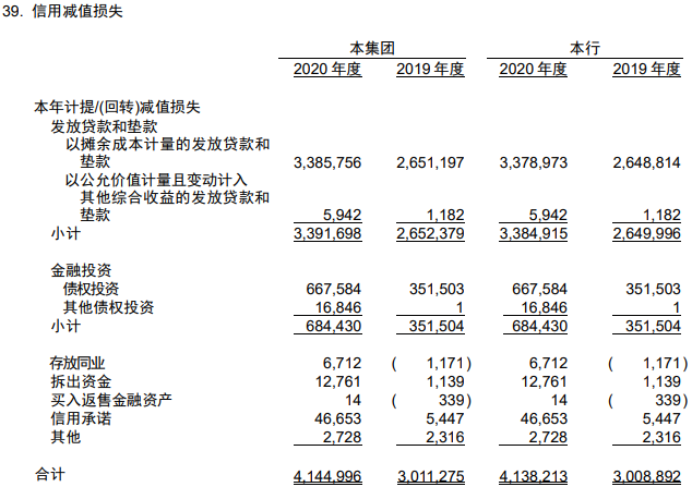 2020年,成都银行信誉减值损失为41.45亿元,同比增长37.65%,次要是计提发放贷款和垫款及债务投资减值损失添加所致。其中,发放贷款和垫款减值损失为33.92亿元,上年同期为26.52亿元。