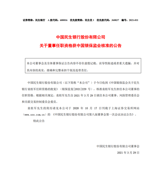 民生银行副行长袁桂军:不良逾期“四降” 资产质量波动向好