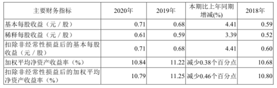 2020年,无锡银行加权均匀净资产收益率为10.84%,比上年同期减少0.38个百分点;扣非后的加权均匀净资产收益率为10.79%,比上年同期减少0.46个百分点。
