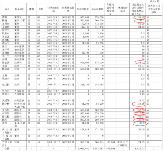 2020年,无锡银行董事、监事和高级管理人员领取税前薪酬总额为1822.73万元,其中,9位董监高人员薪酬超百万。无锡银行董事长邵辉薪酬为159.28万元,董事、行长陶畅薪酬为157.1万元,监事长徐建新薪酬为154.72万元,财务担任人、副行长陈步杨薪酬为153.16万元,副行长王永忠薪酬为152.55万元,副行长何建军薪酬为112.77万元,副行长陈红梅薪酬为152.33万元,副行长陈晖薪酬为135.49万元,董事会秘书孟晋薪酬为106.2万元。