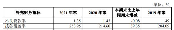 2021年末,齐鲁银行拨备覆盖率为253.95%,较上年末上升39.35个百分点。