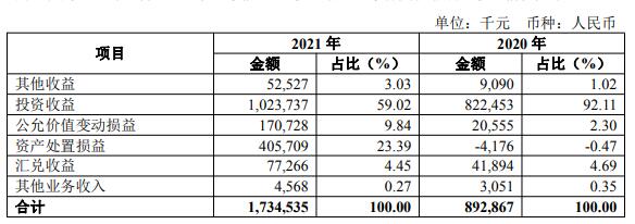 同比进步5.81个百分点,次要是资产处置收益添加。其中,投资收益为10.24亿元,上年同期为8.22亿元。