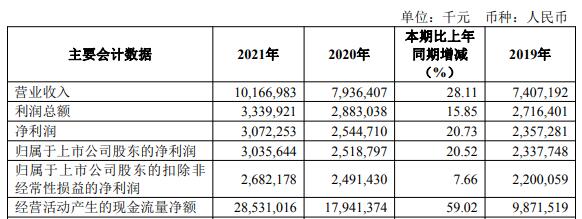 2021年,齐鲁银行完成营业支出101.67亿元,同比增长28.11%;净利润30.72亿元,同比增长20.73%;归属于上市公司股东的净利润30.36亿元,同比增长20.52%;归属于上市公司股东的扣除非经常性损益的净利润26.82亿元,同比增长7.66%;运营活动产生的现金流量净额285.31亿元,同比增长59.02%。