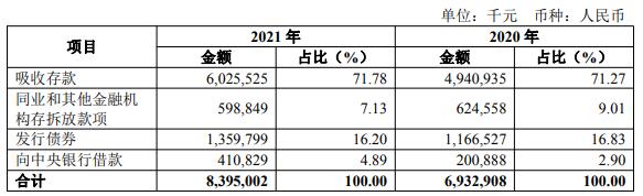 截至2021年末,该行负债总额 4008.09 亿元,较上年末增长 20.39%,次要是由于吸收存款、向地方银行借款等添加。