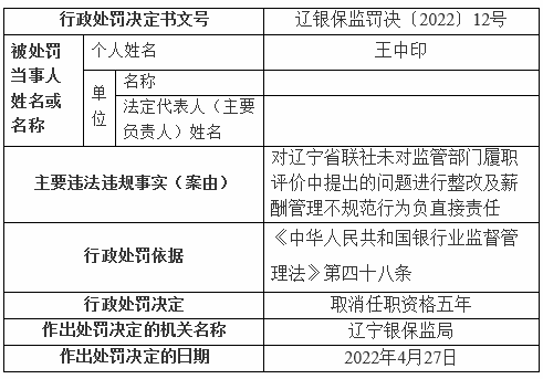 辽宁省乡村信誉社联合社原理事长王中印案细节通报