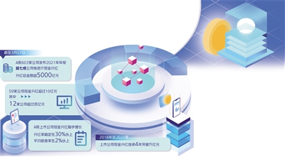 从分红规?,截至3月27日,有59家公司2021年度现金分红超过10亿元,其中中国神华、中国移动、招商银行、中国安全等12家公司分红规模更是超过百亿元。