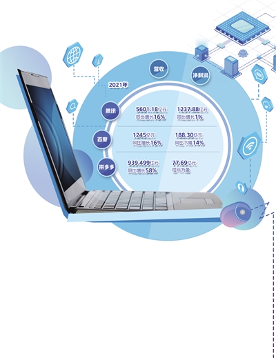 近日,互联网企业2021年年报进入密集披露期,腾讯、阿里巴巴、百度、京东、拼多多等几家大型互联网企业的业绩状况备受关注。