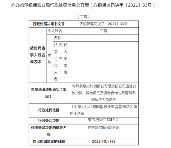 桦南融兴村镇银行违法被罚