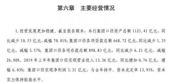 齐商银行官网并未披露2018年半年报,但在中国货币网上齐商银行则披露了母公司亦即齐商银行本级的财务数据,2018年年中、年末与2019年年中相关运营数据如下(单位:亿元):