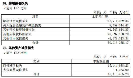 2019年上半年,东北证券信誉减值损失5021.63万元,其他应收款坏账损失7869.72万元,买入返售金融资产减值损失845.95万元。