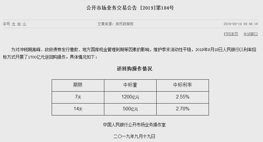 央行:今日开展1400亿元逆回购操作