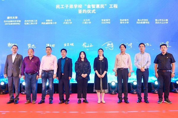 建行350vip葡亰集团苏州金融保险学院院长谢瑞平与民工子弟学校代表签约