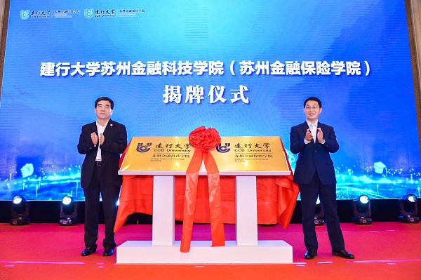 田国立、吴庆文共同为建行350vip葡亰集团苏州金融科技学院(苏州金融保险学院)揭牌