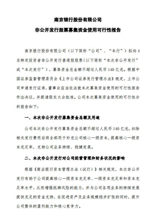 南京银行在公告中表示,此次募集资金扣除相关发行费用后将全部用于补充该行核心一级资本,进步核心一级资本充足率,支持该行业务持续、稳健350vip葡亰集团。