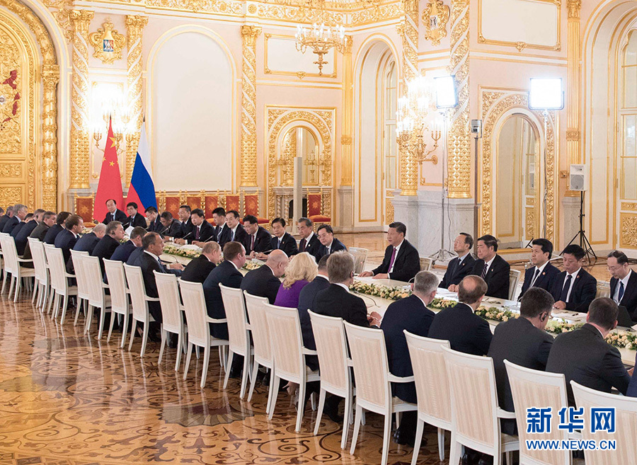 6月5日,国家主席习近平在莫斯科克里姆林宫同俄罗斯总统普京会谈。 新华社记者 谢环驰 摄
