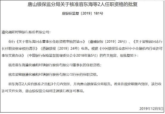 徐保东当阳兴福村镇银行董事长的任职资历获批