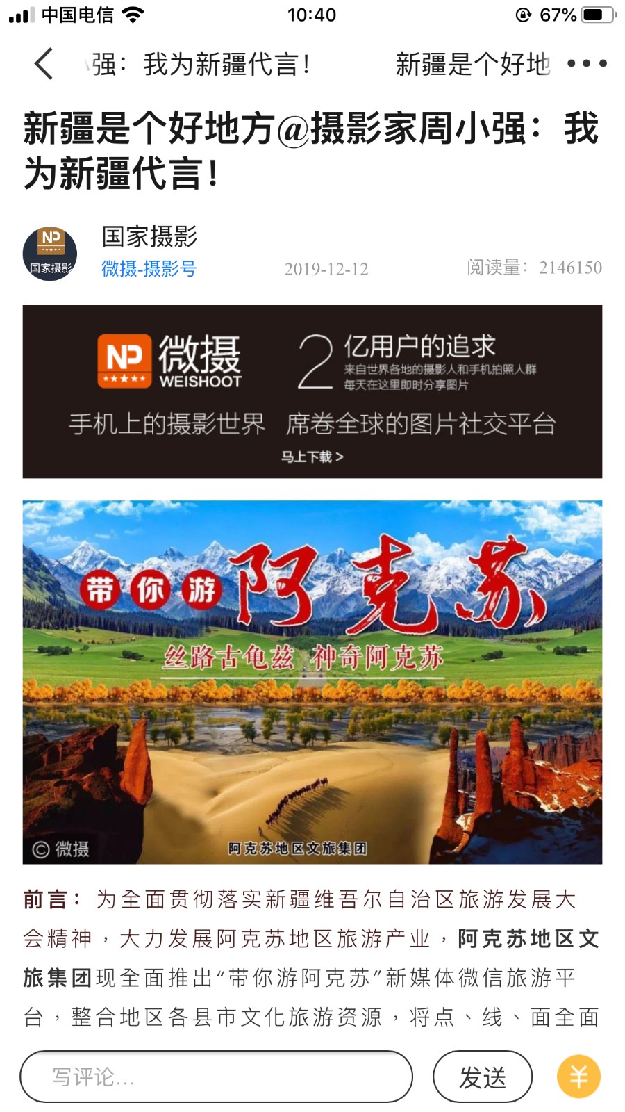 摄影的力量:“我为新疆代言”在微摄24小时,在线人数打破1000多万