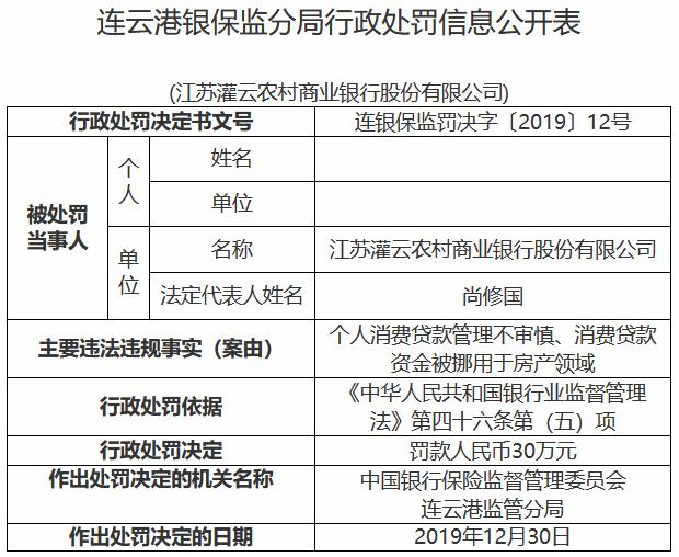 同业违规 挪用信贷资金 江苏姜堰农商银行受罚120万元